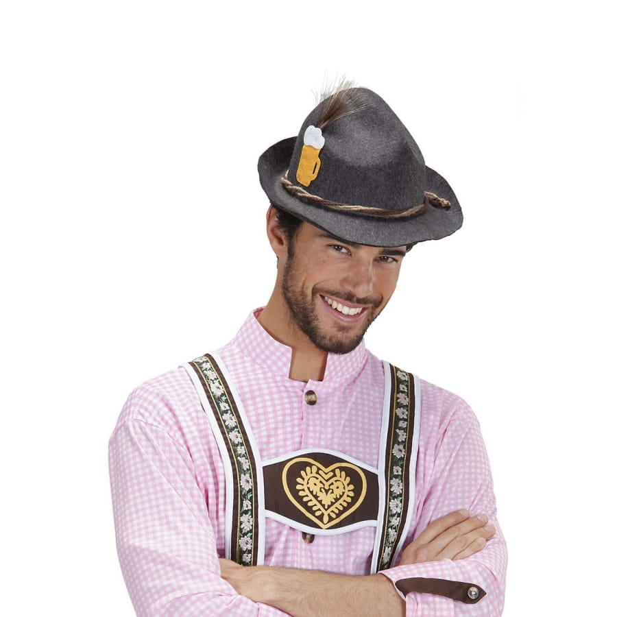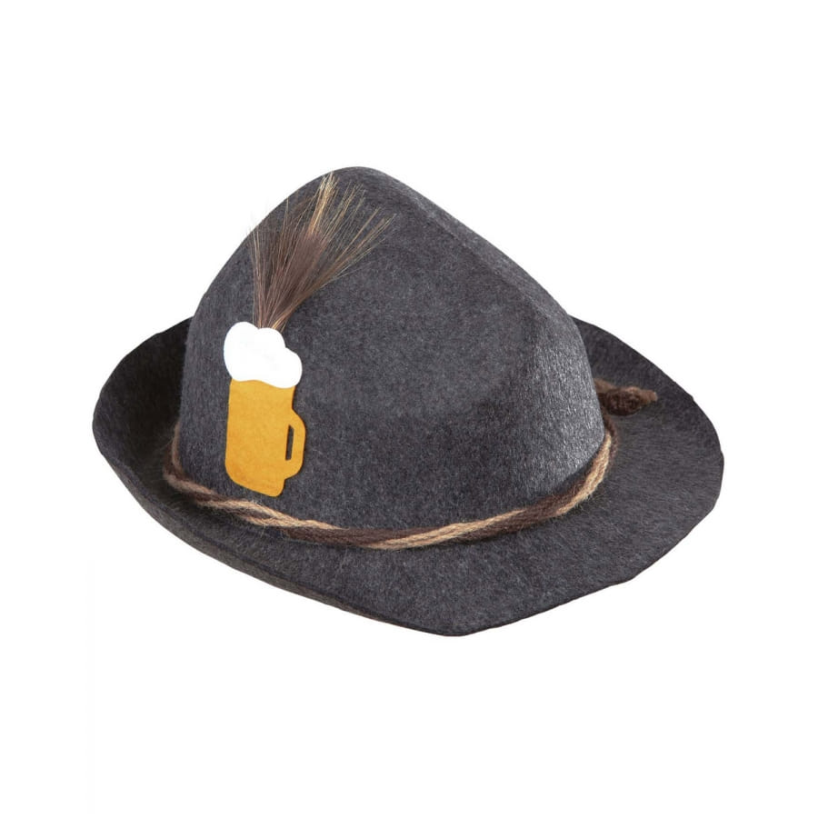 Le chapeau de bavarois décoré d'une bière sur le côté est en effet feutre.