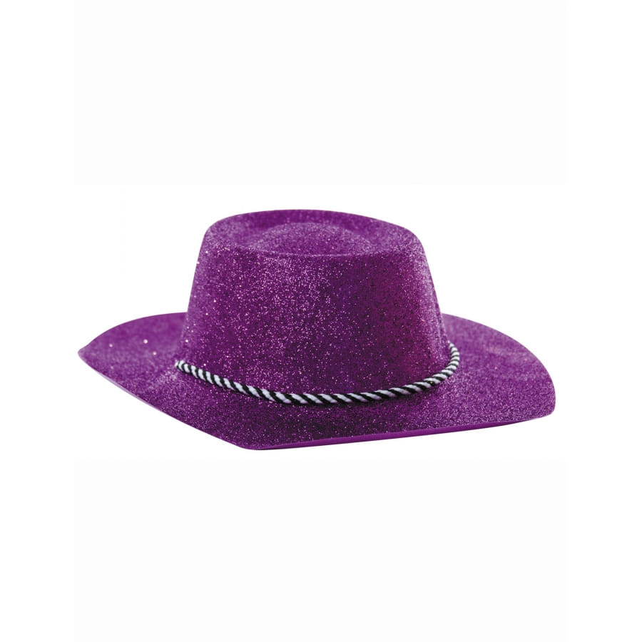 Ce chapeau de cowgirl violet recouvert de paillettes est un complément nécessaire pour les soirées à thème Western ou Amérique.