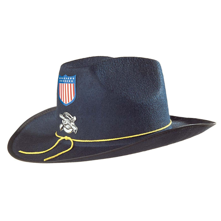 Ce chapeau de la cavalerie américaine pour enfant conviendra à votre bambin pour accessoiriser un déguisement western ou américain. Il s'agit d'un chapeau feutre, de couleur bleu marine, décoré de 2 petites insignes sur le devant, d'une ficelle jaune à la base, et bordé par un liseré noir. Il donnera à votre enfant l'occasion d'incarner un grand cavalier de l'armée des Etats-Unis pendant les années 1800.