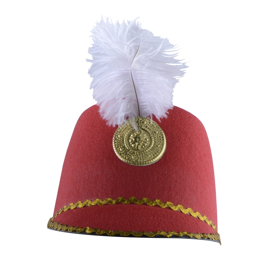Rien de mieux pour accompagner votre tenue de majorette que ce chapeau de majorette de couleur rouge avec plumes assorties et bordures dorées. Cet accessoire est parfait pour un carnaval.