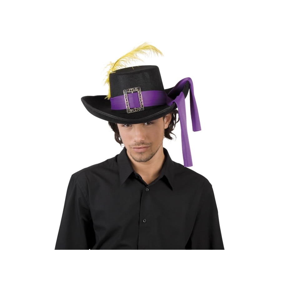 Faites partie du trio légendaire en vous munissant de ce chapeau de mousquetaire avec ruban violet.