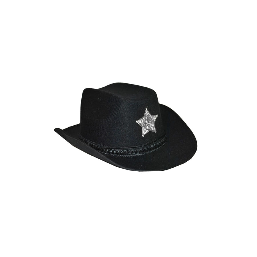 Ce chapeau de shérif noir uni avec étoile argentée peut accompagner votre déguisement en toutes circonstances.