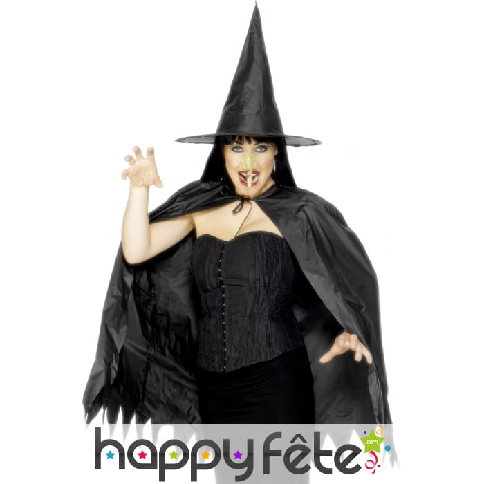 Vous incarnez une redoutable sorcière pour Halloween. Ce déguisement vous convient parfaitement. Vous pourrez aussi le porter si vous vous rendez à une fête ayant pour thème magie. Il est composé d'une cape noir, d'un chapeau pointu ainsi que d'un long nez.