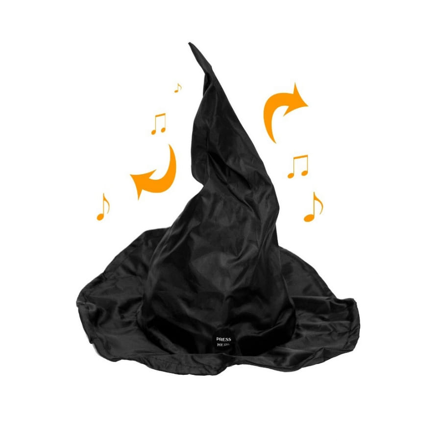 L'ambiance sera assurée à Halloween si vous choisissez de mettre sur votre tête ce chapeau de sorcière chantant et dansant de 40 cm pour adulte.