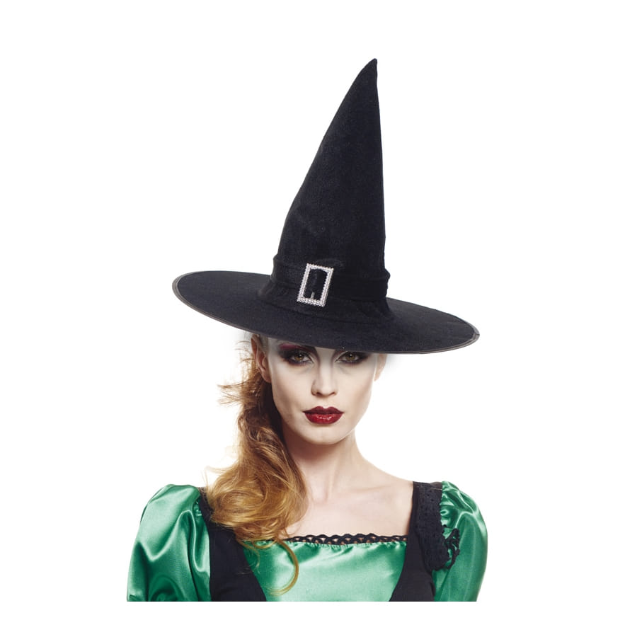 Une sorcière qui a de la classe ! Ce chapeau de sorcière pointu noir en velours va assurément embellir votre déguisement. Conçu spécialement pour vous mesdames, ce modèle de couleur noire fait une hauteur de 40 cm. Il s'agit d'un chapeau de qualité, en velours, parfait pour métamorphoser une simple tenue en costume de sorcière.