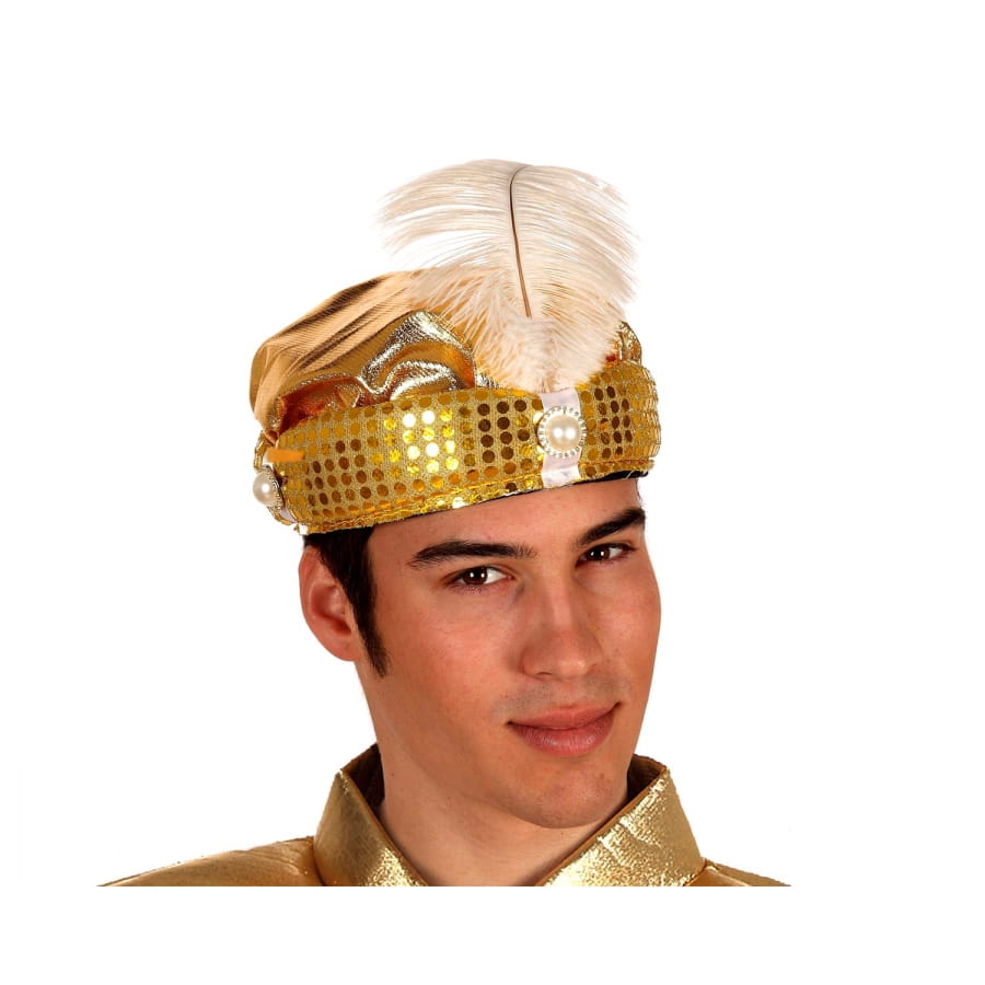 Afin d'être en accord avec le thème de la soirée sur les Mille et une nuits, nous vous suggérons ce chapeau de sultan doré.