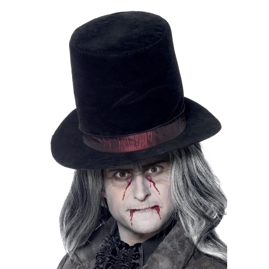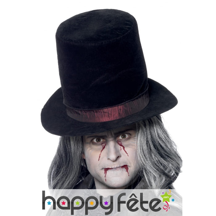 Long chapeau de vampire en velours de couleur noir avec ruban bordeaux, pour homme ou adolescent. Avec ce chapeau, vous aurez l'air d'un vampire tout droit sorti d'un vieux roman anglais, idéal pour Halloween.