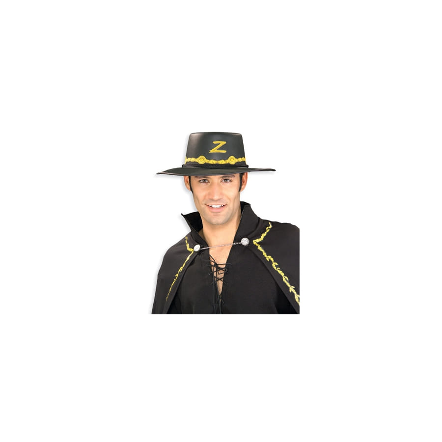 Il porte tous les détails du chapeau du justicier masqué : la couleur noire, les motifs dorés sur la base et l'insigne "Z" doré sur le devant.
