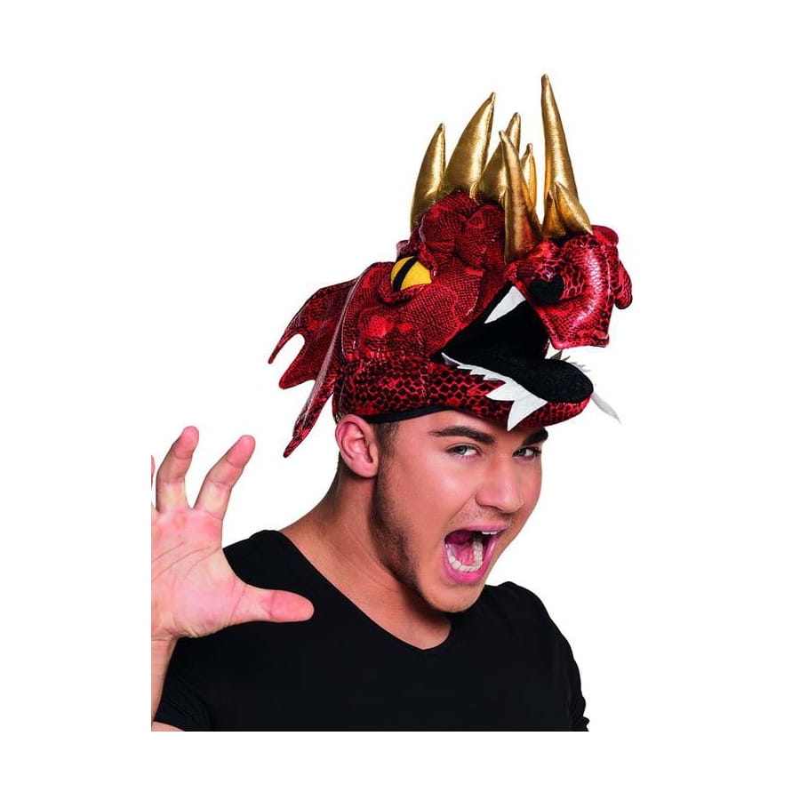 Découvrez notre chapeau dragon rouge cornes dorées.