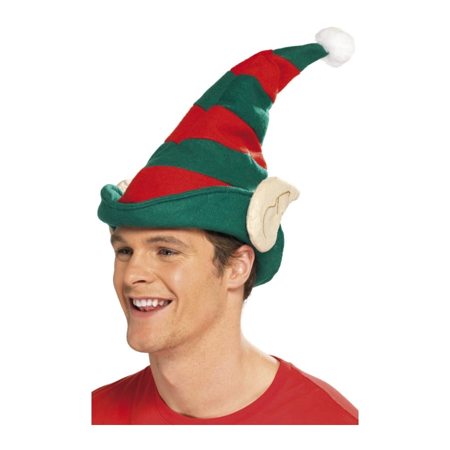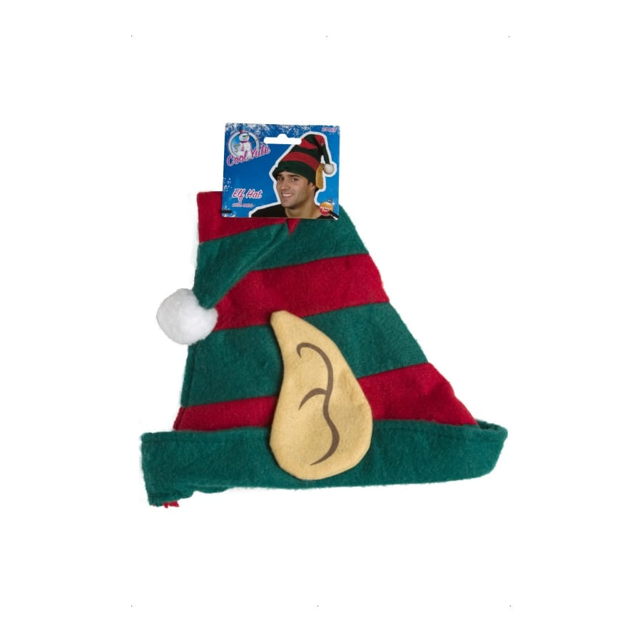 Pour incarner un lutin vous aurez besoin de ce chapeau. Vous pourrez aussi le porter pour la Saint Patrick. De couleur vert et rouge , il a un ponpom blanc a l'extrémité et aussi une paire d'oreille pointu de couleur beige.