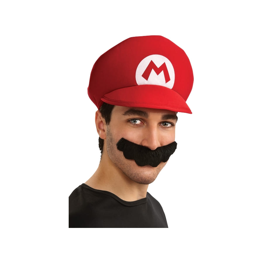 Kit sous licence de Mario, le fameux plombier aventurier, composé d'un chapeau et d'une moustache. Le chapeau est de couleur rouge, avec un logo "M" blanc et rouge et la moustache est noire. Ces deux accessoires combinés feront de vous un vrai personnage de jeux vidéos.