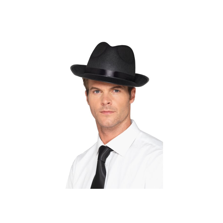 Un chapeau bien sûr ! Ce chapeau fédora noir pour adulte ne faillit pas à cette règle et pourra vous servir dans de nombreuses fêtes à thème, Messieurs, que ce soit pour incarner un danseur des années 20-30, un gangster, un mafioso ou bien d'autres encore.