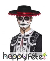 La coiffe est en feutrine, de couleur rouge avec une fine ligne noire à la base. Elle est de forme ronde et est dépourvue de bords.