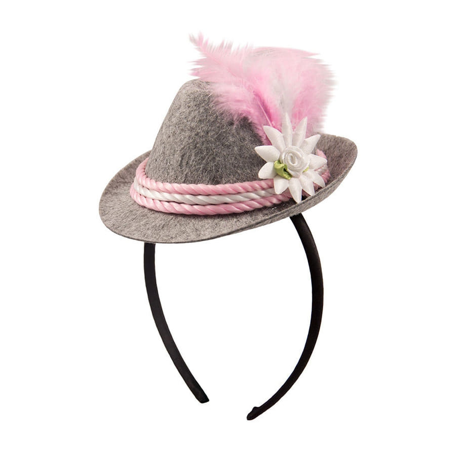 Le chapeau gris rose de bavaroise sur serre-tête est un mini couvre-chef pour adulte.