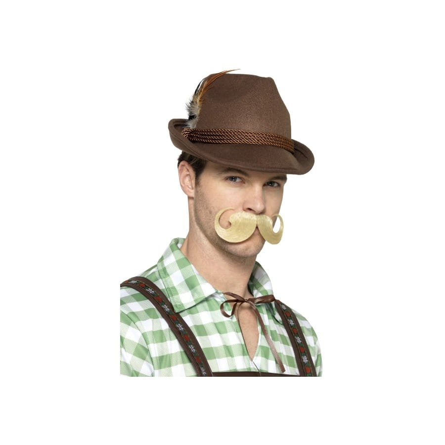 Habillez-vous comme un vrai bavarois à l'occasion de la fête de la bière. Ce chapeau marron de bavarois est un accessoire mixte, adapté aux hommes comme aux femmes. Il s'agit d'un petit modèle de couleur marron foncé avec une plume sur le côté. Pour les messieurs, il est conseillé de l'accompagner d'une fausse moustache pour un look mieux élaboré.