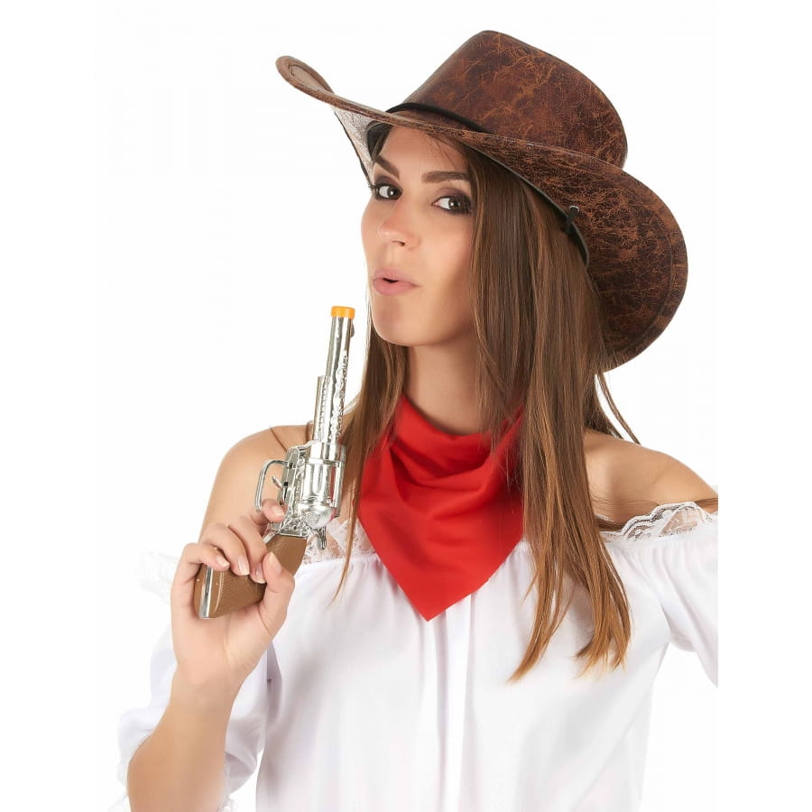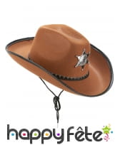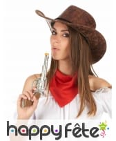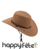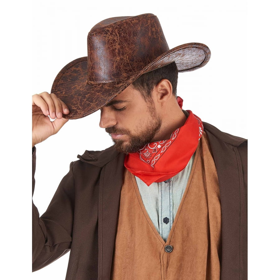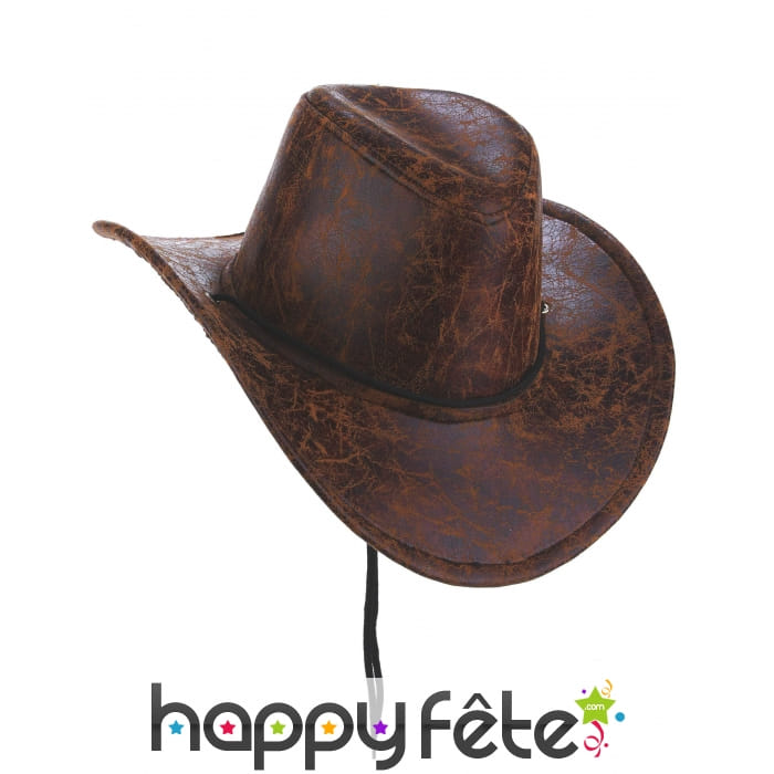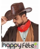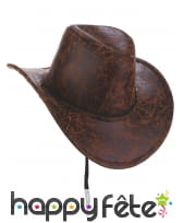Ce chapeau marron de cowboy imitation cuir, pour adulte vous donnera une allure digne des ranchs du Far-West.
