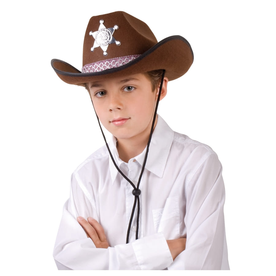 L'officier de police va avoir besoin de ce chapeau marron de sheriff pour petit garçon.