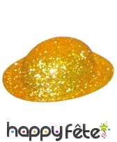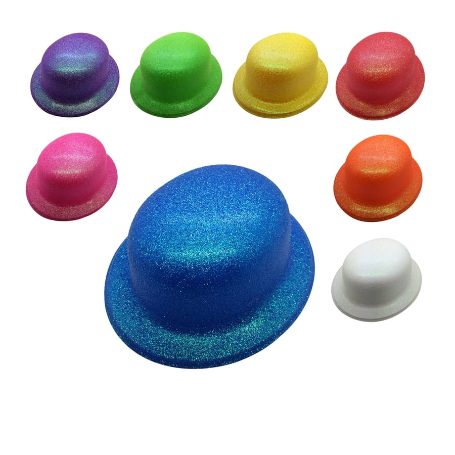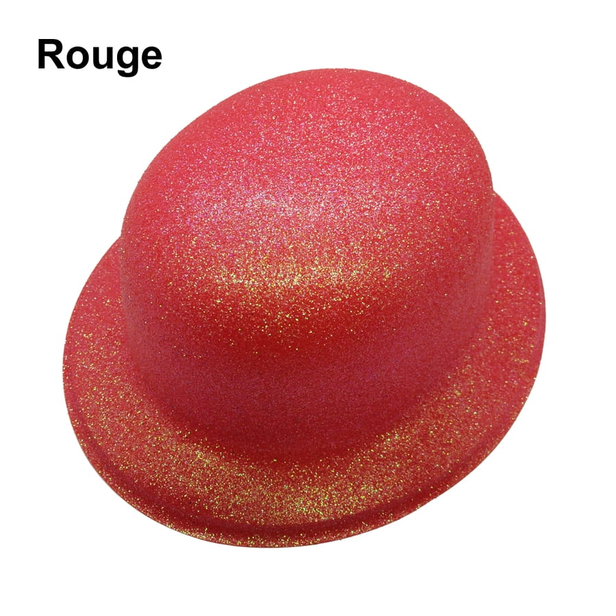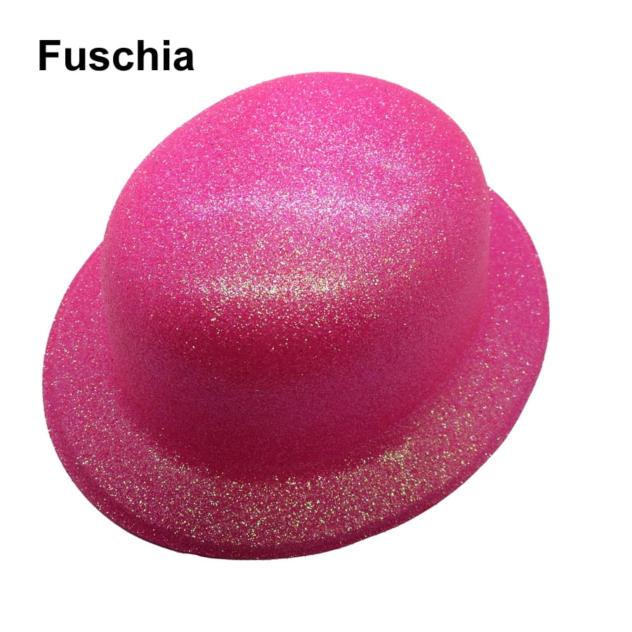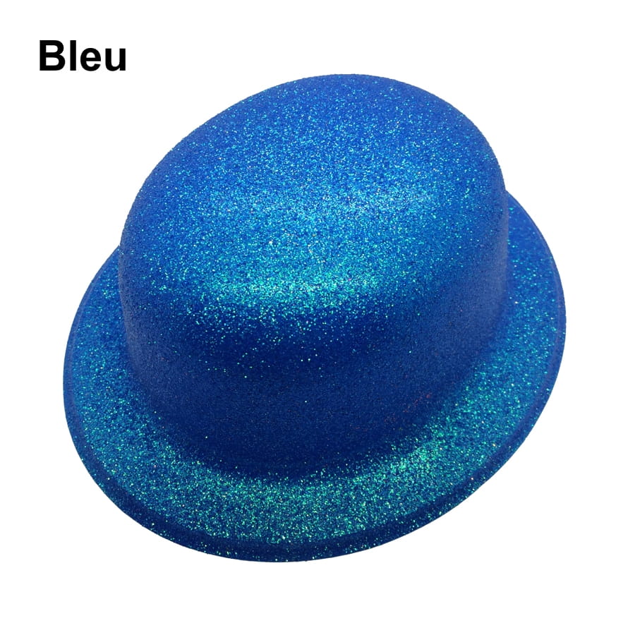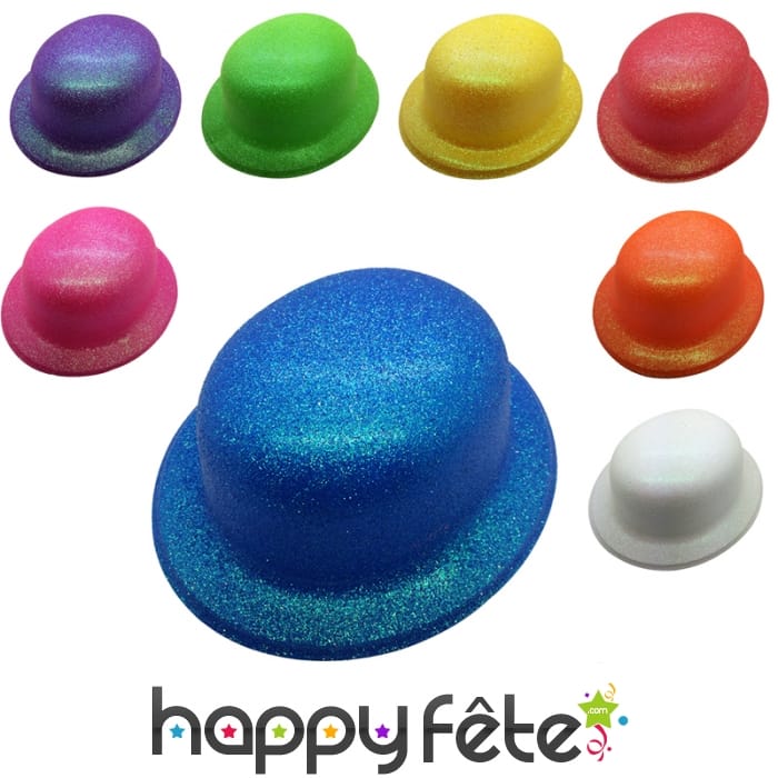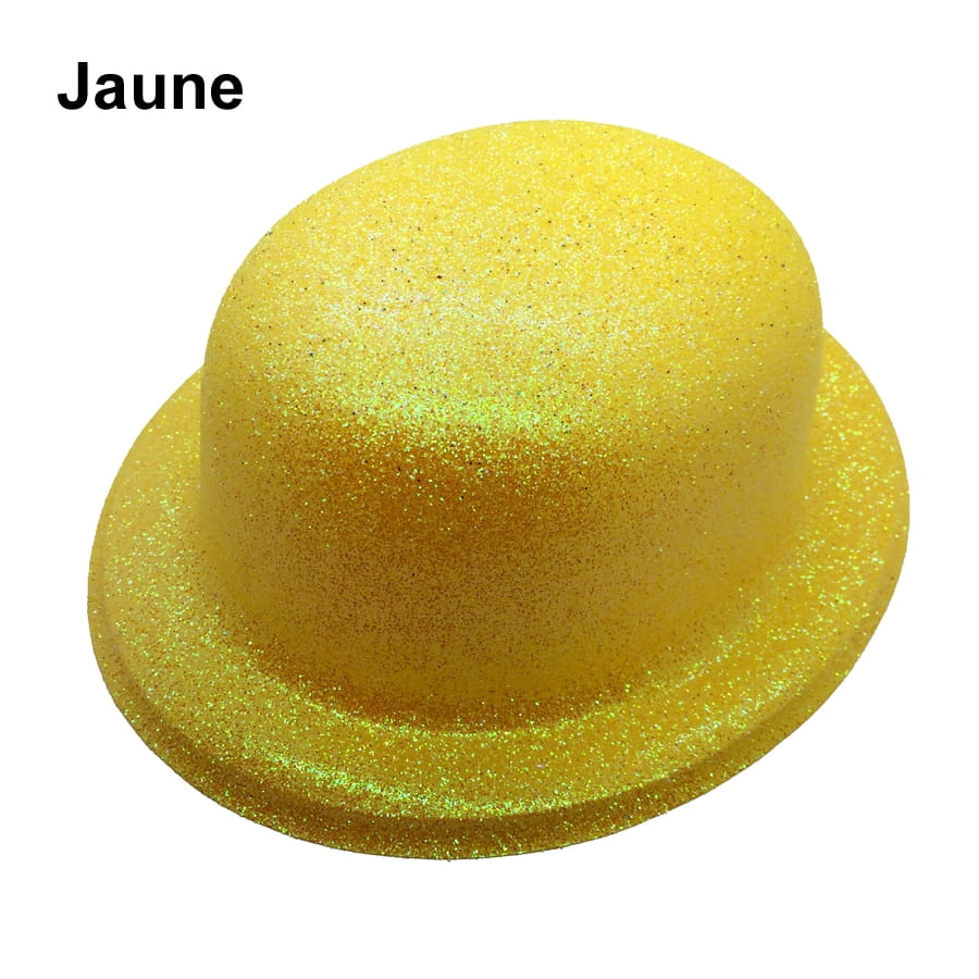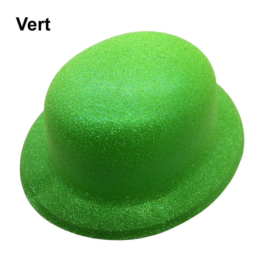 Faites la fête jusqu'au petit matin en revêtant ce chapeau melon pailleté, resplendissant dans sa couleur fluo, elle reflète dynamisme et liberté. A vous les rythmes endiablés ! Le chapeau est en plastique et est disponible sous divers coloris : le bleu, le fushia, l'irisé, le jaune, l'orange, le rouge, le vert et le violet. A vous de l'agrémenter à votre tenue, il peut convenir à bien des thèmes : années charleston, disco, folklore ou cabaret.