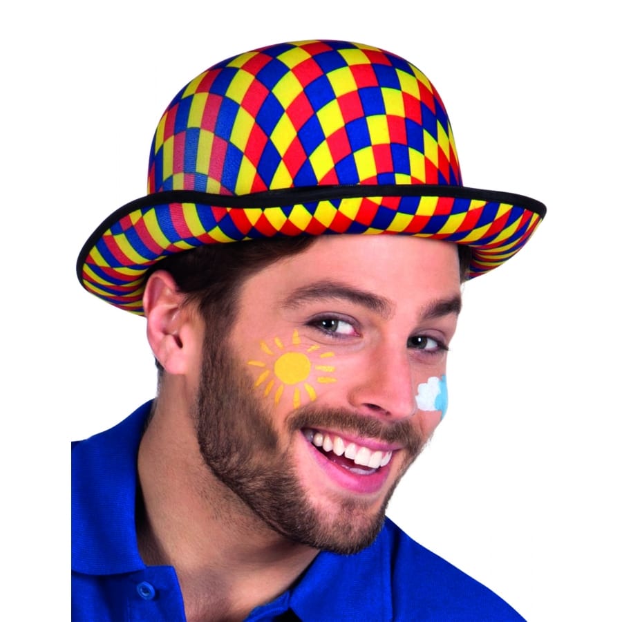 Le chapeau melon losanges multicolores un couvre-chef de clown pour adultes.