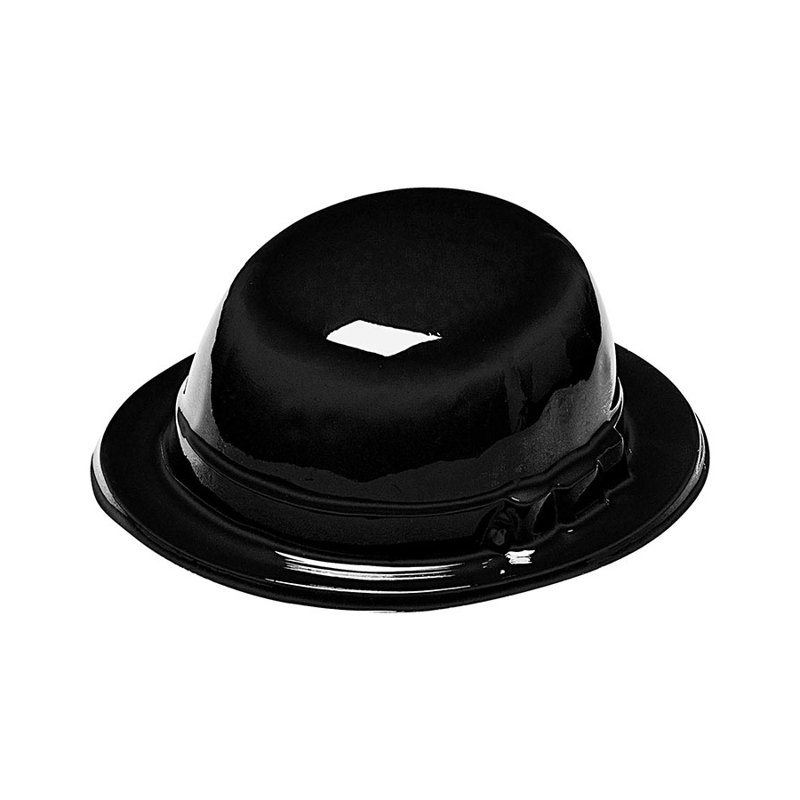 Jouer les Charlie Chaplin dans une soirée années 30 grâce au chapeau melon noir en PVC pour adulte.