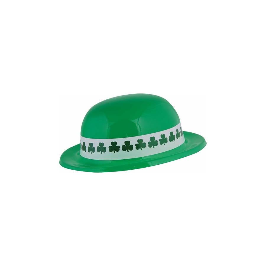 Voici un chapeau melon vert Saint Patrick en plastique pour adulte.
