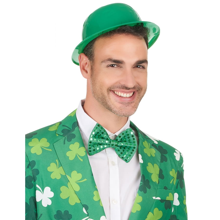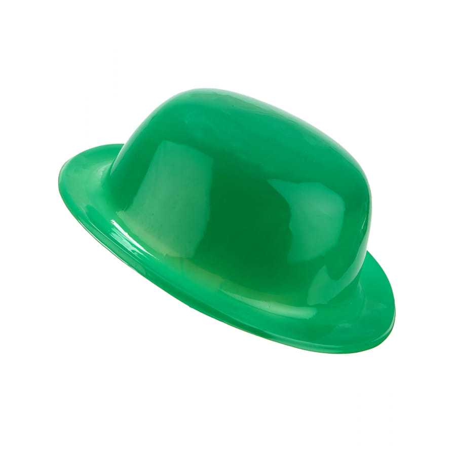 Pour que vous soyez dans le thème de la célèbre fête Irlandaise, nous vous proposons ce chapeau melon vert uni en plastique pour compléter votre déguisement.