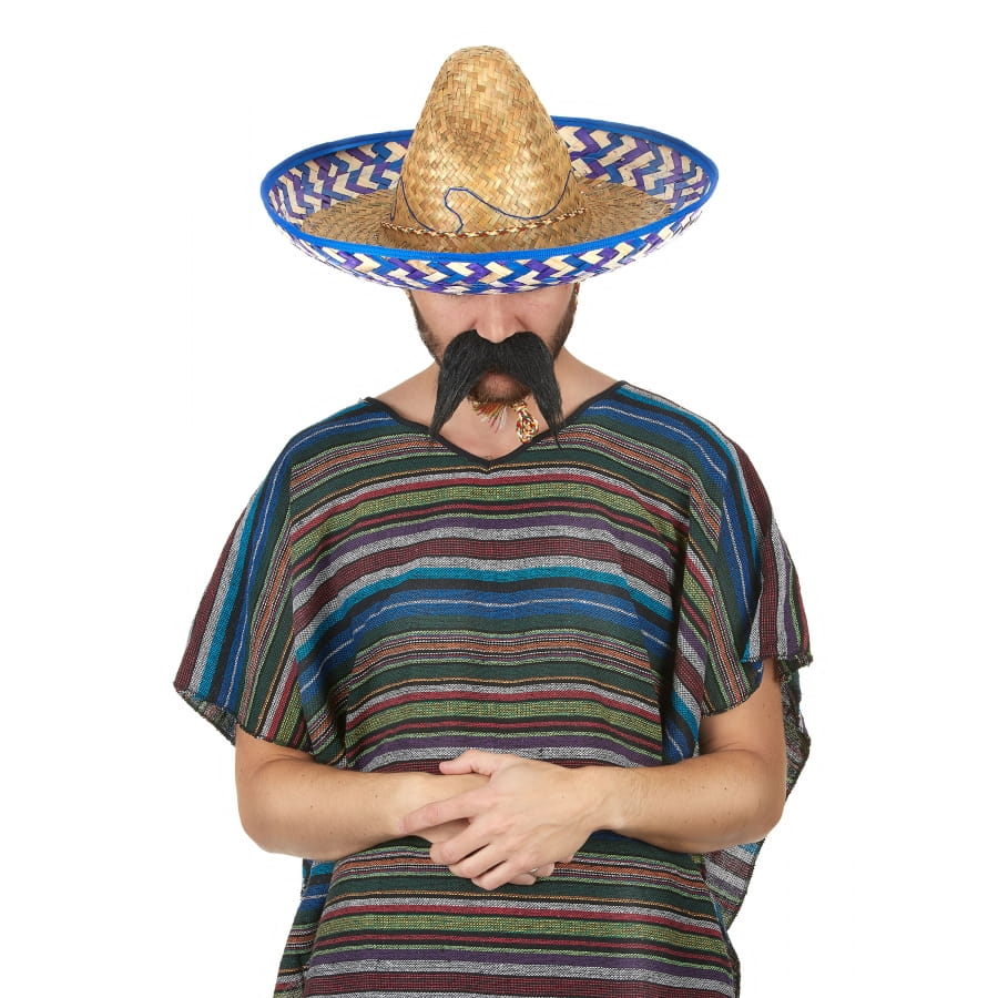 Ce Chapeau mexicain en paille contour bleu est pour adulte et convient pour un tour de tête de 61 cm environ.