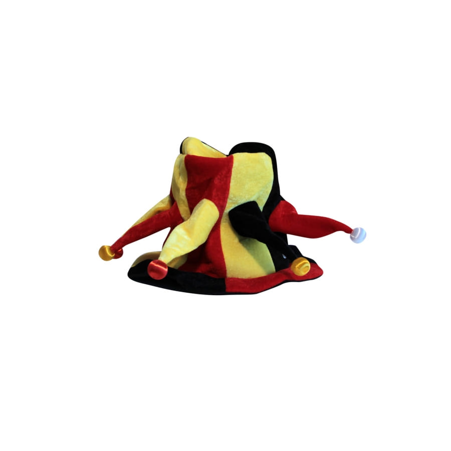 Ce chapeau multicolore de fou du roi ou chapeau de Joker est réalisé avec un tissu façon velours.