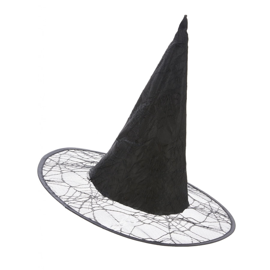 Pour ces dames qui veulent se transformer en méchantes jeteuses de mauvais sorts pendant la nuit d'Halloween, nous vous présentons le chapeau noir sorcière décor toile d'araignée afin de parfaire votre apparat.