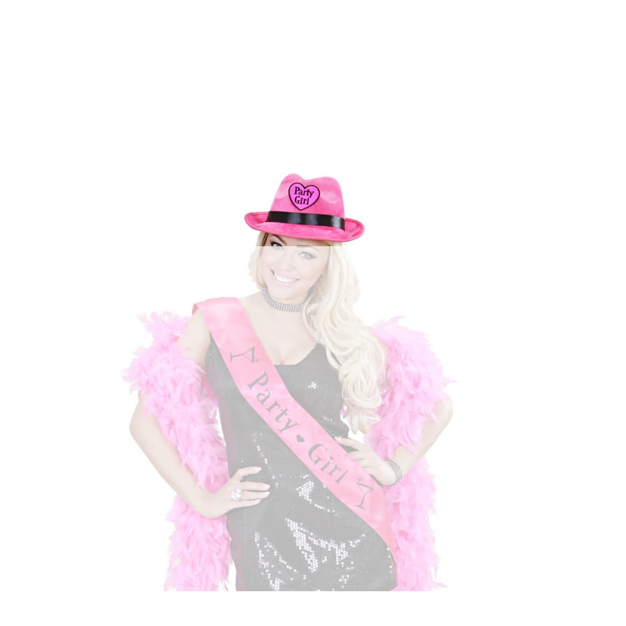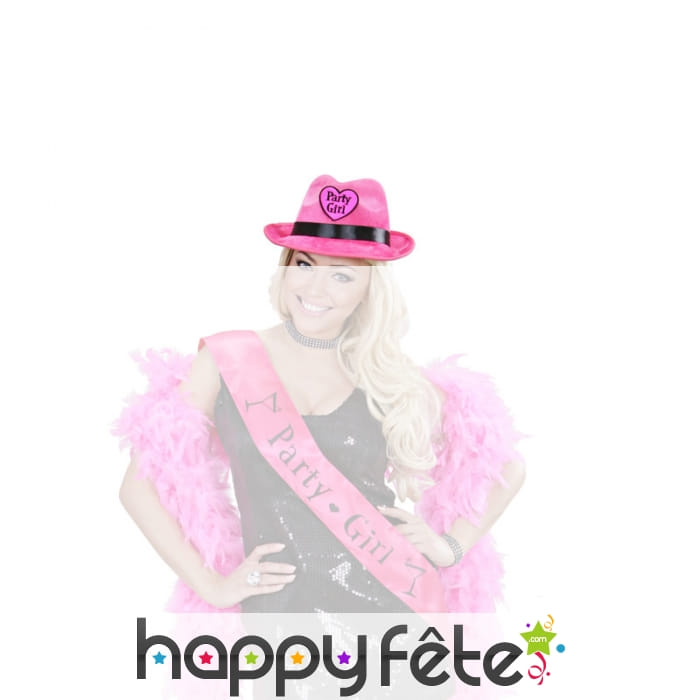 Un peu d'humour c'est toujours idéal pour agrémenter l'ambiance d'une soirée, n'est ce pas? Porter ce chapeau rose "party girl" attestera de votre envie de faire la fête jusqu'au petit matin et incitera les autres à en faire autant. C'est un chapeau qui conviendra à une soirée en boîte ou un enterrement de vie de jeune fille. Le chapeau est fait de feutrine, de couleur rose et entouré d'un petit ruban noir, avec l'inscription "Party girl" dans un coeur sur le devant. Idéal avec une robe noire !