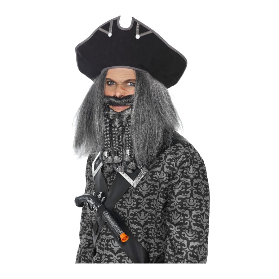Chapeau de pirate, terreur des mers, pour homme. Cet accessoire est de couleur grise et noire. Il vous donnera un air de vieux pirate, habitué des mers et à qui rien ne fait peur.