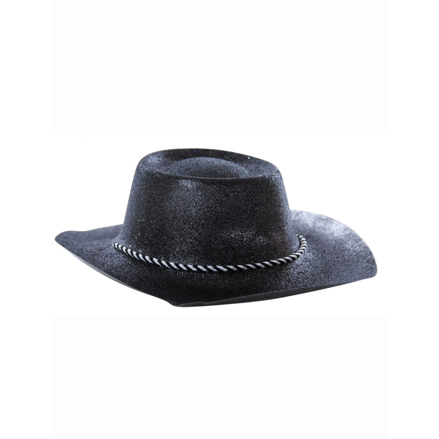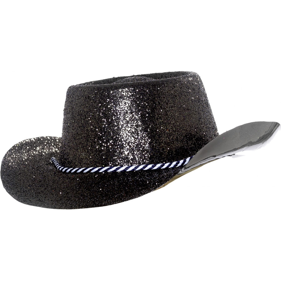 Apportez une touche d'originalité avec ce chapeau de cowboy en plastique, recouvert de paillettes noires. Cet accessoire est parfait pour une soirée Western un peu hors de l'ordinaire.