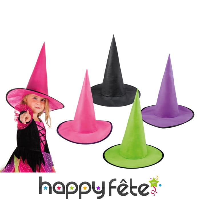Transformez votre fille fille en une épouvantable sorcière d'Halloween grâce à ce chapeau pointu de sorcière pour enfant, 4 couleurs.