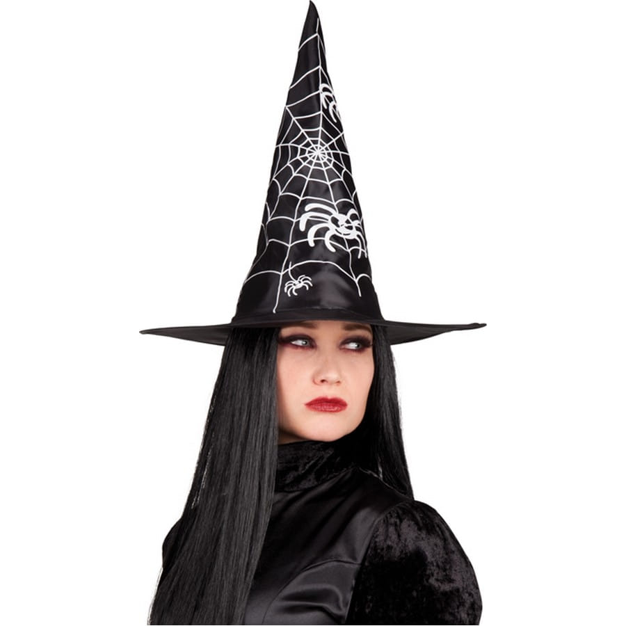 Pour rendre votre accoutrement encore plus convaincant, nous vous proposons le chapeau pointu imprimé toile d'araignée.