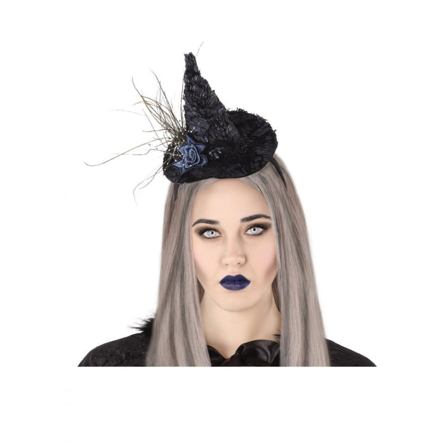 Il s'agit d'un mini chapeau de couleur noire fixé sur un serre-tête.