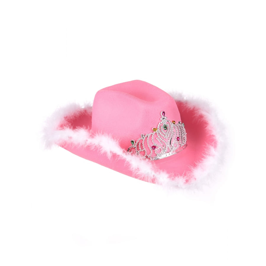 En effet, ce chapeau en feutrine rose est surmonté d'un diadème argenté et décoré de fausses pierres précieuses.