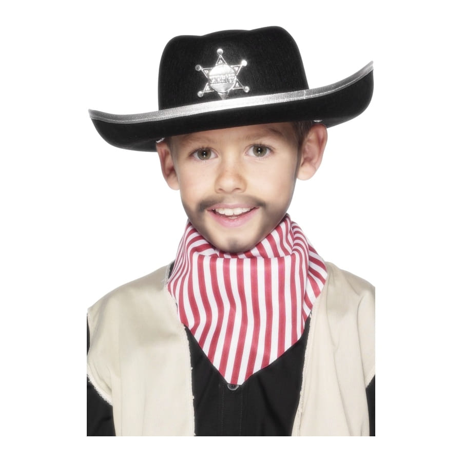 Chapeau de shérif, pour enfant, de couleur noire, avec bordure et étoile de shrérif argentées. Votre enfant deviendra un shérif élégant et charismatique à l'occasion de sa fête d'anniversaire avec ce chapeau.