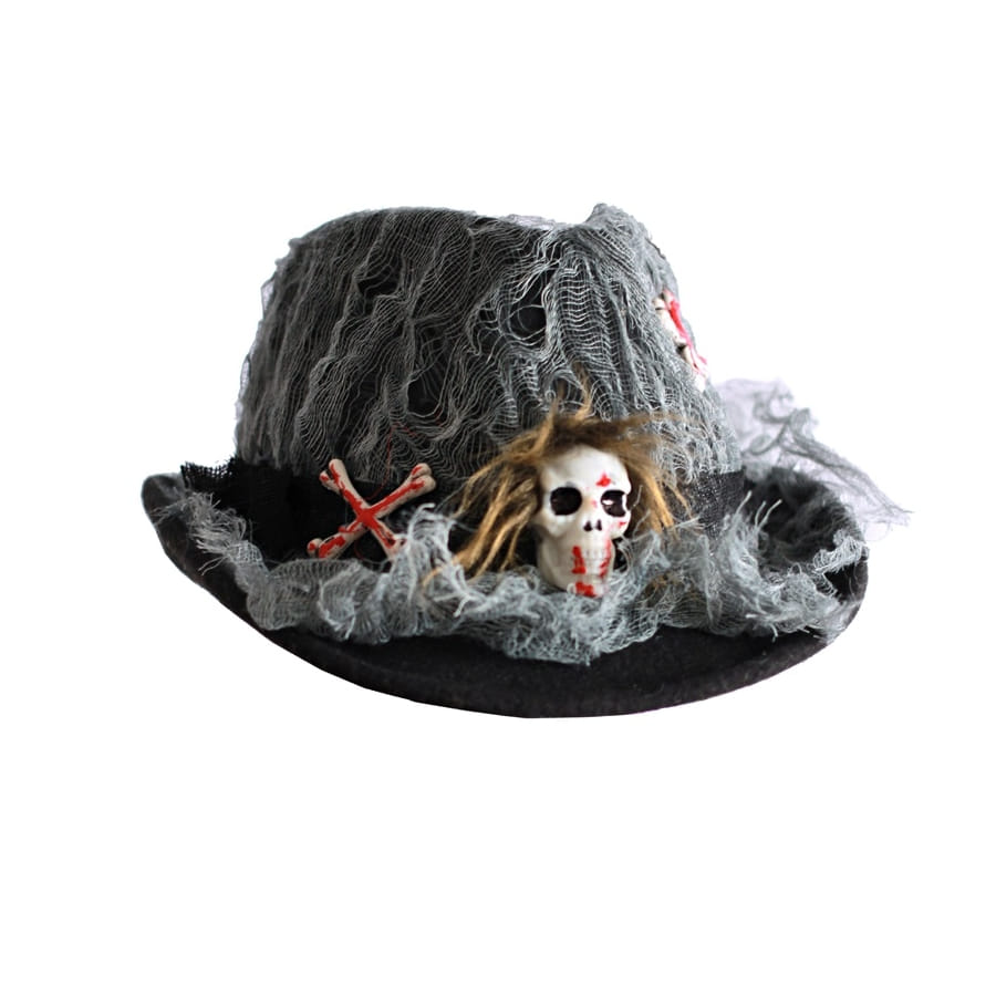 Ce chapeau toile d'araignée Halloween est fait pour les hommes. Il est fait à 50% non tissé, 10% en plastique et 30% en polyester. Ce chapeau effrayant est à base noire. De fins fils représentant une toile d'araignée l'entourent entièrement, d'une manière très réaliste. Une petite tête de mort en plastique, ainsi que des petits os, apportent la touche finale au chapeau. Ce dernier sera idéal pour Halloween ou une soirée Horreur.