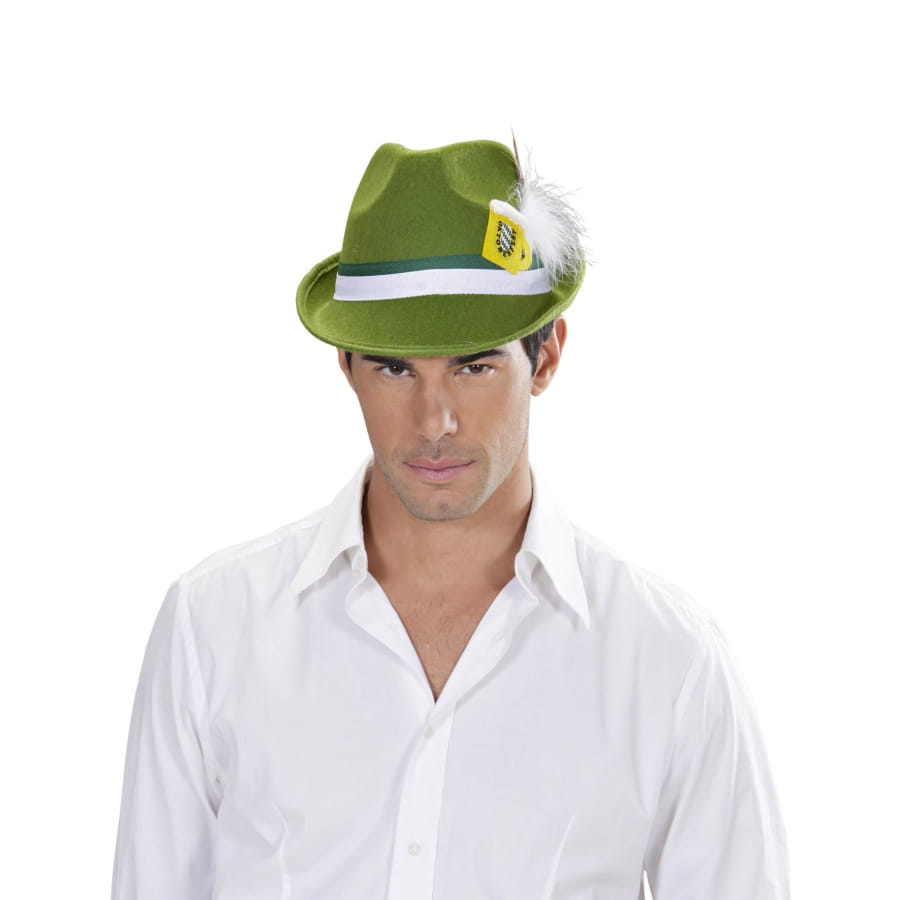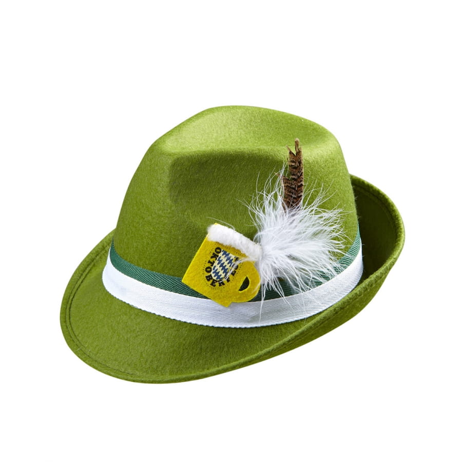 Le chapeau vert de bavarois avec bière décorative est un couvre-chef effet feutrine en forme de borsalino.