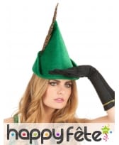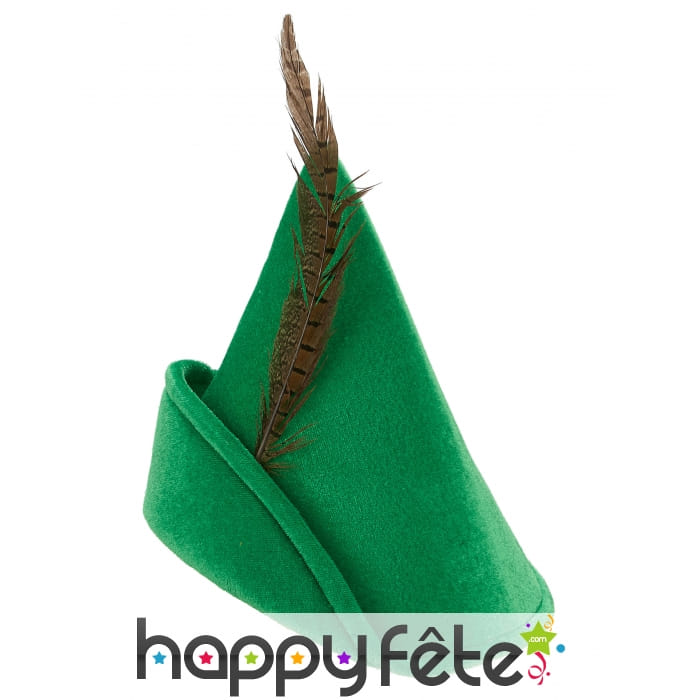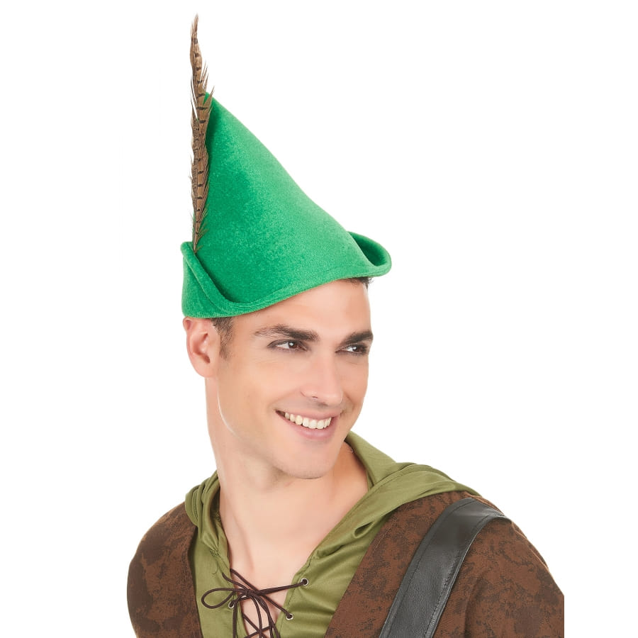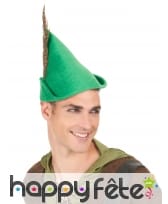 Le chapeau vert de Robin pour adulte est en mousse et couvert d'un tissu imitation velours.