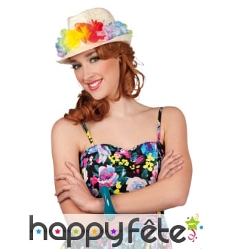 Les belles plages de sable fin, les vagues déferlant de la mer, les cocktails, les parasols, les petites tenues... Tout cela a un air de vacances très exotiques. Cette partie de notre site vous transportera vers cet univers ! En voyant ces chapeaux exotiques des Antilles ou d'Hawaï, vous sentirez comme un vent de mer frais vous caresser le visage. Pour un joli déguisement exotique, le chapeau est effectivement de mise car le soleil est toujours au rendez vous. Choisissez parmi ces différents types de chapeaux hawaïens, ces chapeaux de paille en divers coloris, ces chapeaux des Caraïbes, ces chapeaux Panama, ces chapeaux pour rasta, ces Borsalino Ibiza etc. Avec l'un de ces jolis chapeaux, assorti d'une tenue légère ou d'une tenue typiquement hawaïenne ou antillaise, d'un pagne, un petit cocktail à la main, et vous voilà déguisé d'une manière très exotique ! Ça ne vous fait pas penser à prendre des vacances tout ça ? En plus de cela, les chapeaux que nous avons ici pourront aussi très bien se porter pour des soirées hippie ou charleston, d'autres thèmes et d'autres rêves encore !
