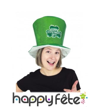 La Saint-Patrick est une fête connue un peu partout dans le monde. Il s'agit d'une fête chrétienne rendant hommage au Saint-Patron de l'Irlande. Elle est célébrée par les Irlandais du monde entier, et s'est même propagée vers les non-Irlandais. La fête se caractérise par la mise en avant de la couleur verte ainsi que de tout ce qui appartient à la culture irlandaise. C'est dans ce même principe que nous avons sélectionné pour vous un large assortiment de chapeaux hauts de forme à porter en cette occasion. Les modèles sont inspirés des chapeaux des fameux lutins ou leprechaun, conservateurs de pièces d'or ! Vous repérerez diverses nuances de vert, des motifs originaux et des formes variées dans ces chapeaux. Nous conseillons vivement aux dames d'opter pour les mini hauts de forme, qui donnent du style à la coiffure et vous apportent charme et élégance. Les modèles fournis avec masque sont plus sophistiqués. Quant à vous Messieurs, faites vous passer pour un vrai lutin grâce au haut de forme muni de barbe. Les chapeaux avec motifs trèfles pourront aussi vous mettre en avant. Irlandais d'un jour ou Irlandais pour toujours, ces chapeaux sauront conquérir votre coeur !