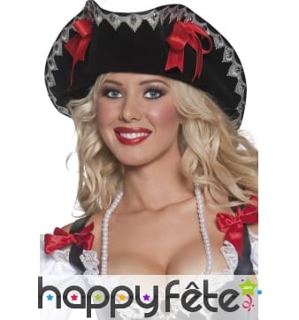 Nous nous demandons souvent comment vivent ces pilleurs des mers, qu'est ce qui les pousse à faire leur métier. Si vous avez toujours été fascinés par la vie de ces pirates et de ces corsaires, vous tombez très bien, car cette section est justement destinée à ceux qui veulent arborer un beau chapeau de pirate. Les chapeaux dans cette section sont pour la plupart des bicornes et des tricornes, caractéristiques de ces personnages des mers. Homme, femme et enfant pourront faire leur choix parmi les nombreux chapeaux que nous proposons. Les chapeaux diffèrent par leur couleur, leur forme, leur ornement, leur taille et il y en a pour tous les goûts. Les chapeaux d'homme sont surtout ornés de la fameuse tête de mort, tandis que ceux pour femme sont plus féminins, décorés de jolis noeuds, de dentelle ou de plumes. Nous vous conseillons également de faire un tour parmi nos nombreux déguisements de pirate pour toute la famille, ainsi que du côté des nombreux accessoires qui vont avec : épées, pistolets, cache oeil, ou même moustaches et maquillages. A l'abordage les amis, c'est le moment d'attaquer ! Mais auparavant, enfilez votre chapeau de pirate pour faire peur à vos adversaires. Pour les adeptes de la piraterie en tout genre, voici des trésors cachés que vous vous devez de découvrir. Cette multitude de chapeaux de pirates a été retrouvée dans les 4 coins du monde, et elle est spécialement mise à votre disposition pour vous accompagner dans vos aventures des mers. Tout cet attirail de chapeaux servira à compléter votre déguisement de pirate, alors tenez vous bien, car vous n'allez pas en croire vos yeux. Comme avant-goût, sachez qu'il existe à travers la page des chapeaux bicornes et tricornes, de différents styles, de différentes couleurs, ornés de motifs, comme celui du symbole des pirates par exemple. La gente féminine est plutôt gâtée, car de charmants chapeaux vous sont consacrés. Nous parlons ici de chapeaux pirates, de tricornes, de serre-têtes avec mini-chapeau, idéaux pour les soirées de Saint-Valentin. Pour les plus originaux, il existe même des chapeaux agrémentés de dreadlocks ou bien de faux cheveux. Intéressés ? A vous de découvrir tous les détails en image !