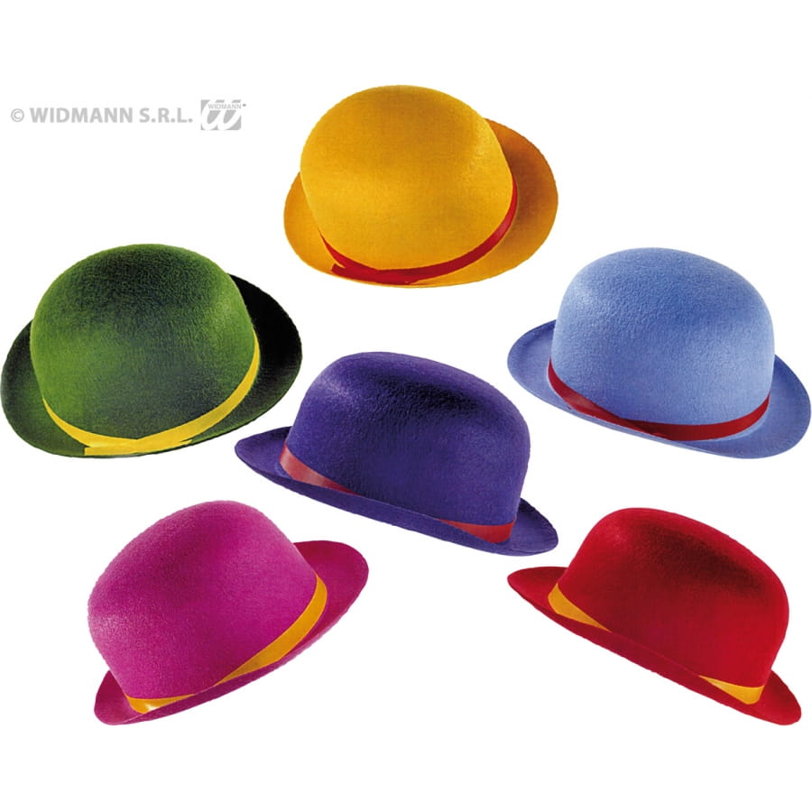 Vous êtes sur de faire rire ou sourire avec ce chapeau melon de clown. Il est impossible de choisir la couleur ou le modèle du chapeau. Vous le recevrez dans une des couleurs présentées: bleu, jaune, rouge, vert ou violet. C'est un accessoire idéal pour un anniversaire d'enfants.