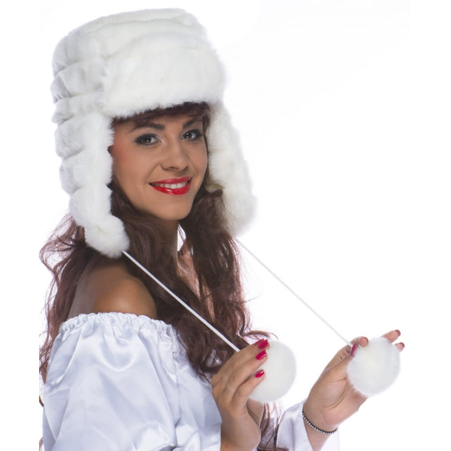 Affrontez le froid hivernal avec classe grâce à cette belle chapka blanche en fausse fourrure 100% polyester. Elle mesure 60 cm, entièrement de couleur blanche et possède deux jolis pompons maintenus par des cordons. Vous pourrez utiliser cette chapka pour compléter votre déguisement de femme russe ou votre tenue de slave durant vos soirées habillées, ou tout simplement pour vous sublimer pendant l'hiver.