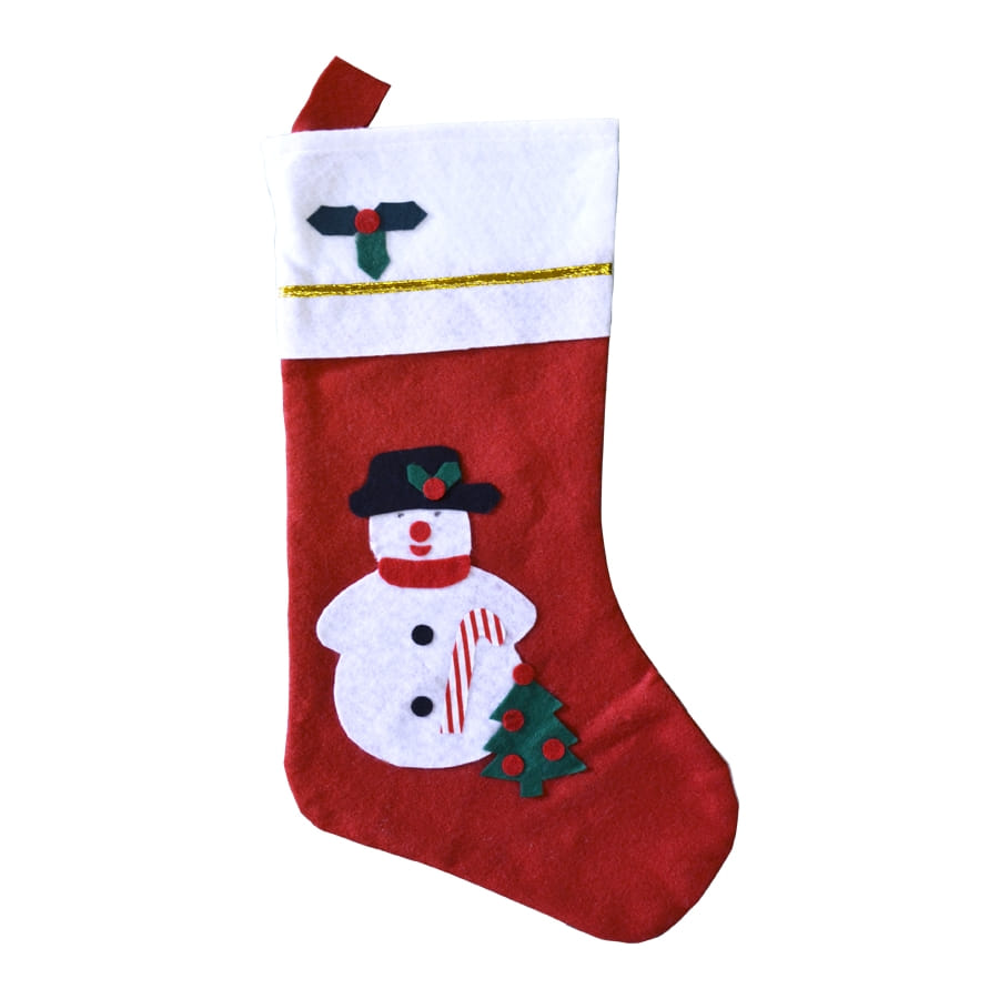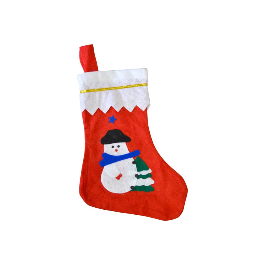 Posez cette chaussette de noel ou vous voudrez chez vous pour peaufiner votre décoration de noel. De couleur rouge et blanc, il est en feutrine. La chaussette fait 30 cm, de couleur rouge il y a un bonhomme de neige et un sapin dessus, il a une petite corde rouge pour l'accrocher .