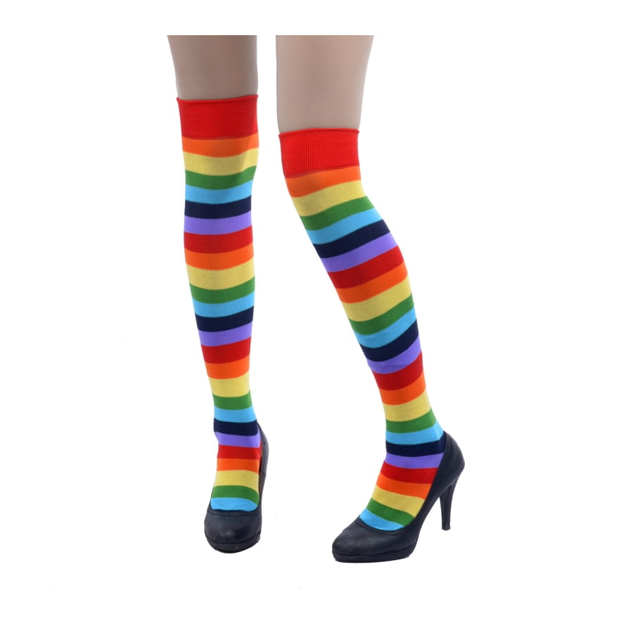 Brillez de mille couleurs et n'ayez pas peur d'attirer l'attention sur vous grâce à ces chaussettes hautes lignées multicolores. Messieurs, vous pouvez très bien les porter pour parfaire votre déguisement de clown. Quant à vous Mesdames, ces chaussettes à rayures multicolores mesurant 67 cm iront parfaitement à votre déguisement d'écolière. Portez des escarpins à talons noirs pour un look très sexy.