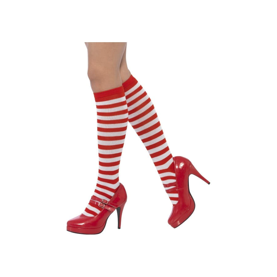 Oh les belles rayures ! Les elfes, les lutins, ainsi que les merveilleuses créatures de conte de fées adorent ce look. Le temps est venu pour vous de vous procurer ces chaussettes lignées rouges et blanches. Il s'agit d'un modèle à rayures rouges et blanches, qui monte jusqu'en dessous des genoux. Pour homme ou femme, il se porte pour compléter un déguisement de Noël.