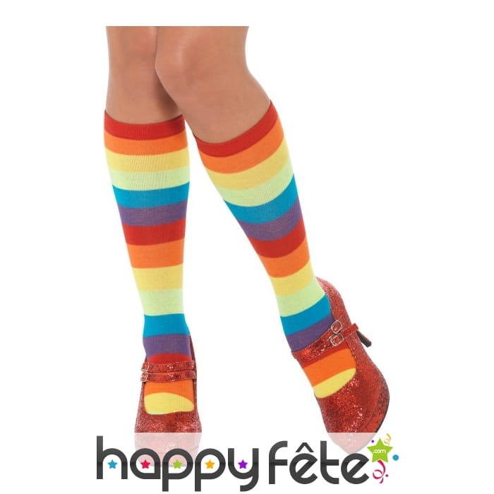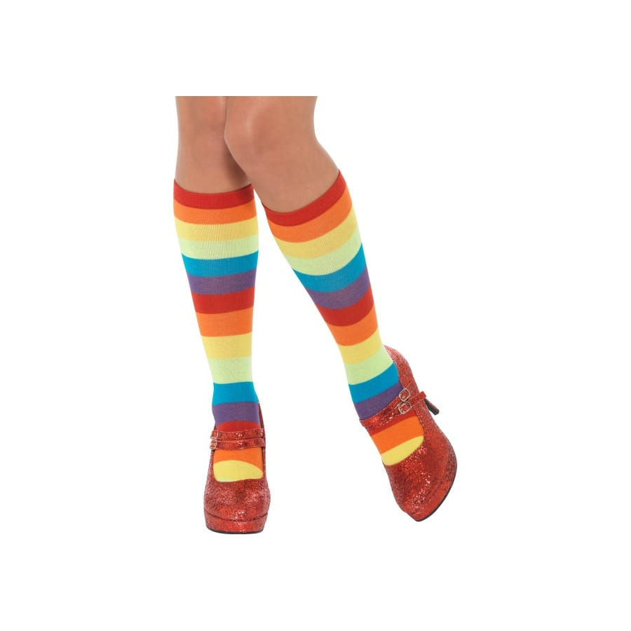 Le style vestimentaire des clowns reflète la joie de vivre et la gaieté grâce à ses couleurs éclatantes. Pour compléter votre déguisement de personnage de cirque, ces chaussettes multicolores de clown sont idéales. Elles recouvriront vos jambes de multiples couleurs disposées en bandes horizontales comme un arc-en ciel. L'article est adapté aux hommes comme aux femmes.