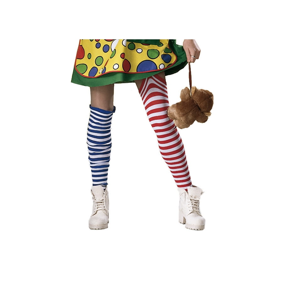Nos chaussettes rayées dépareillées de femme clown accessoiriseront à merveille votre tenue de clown.